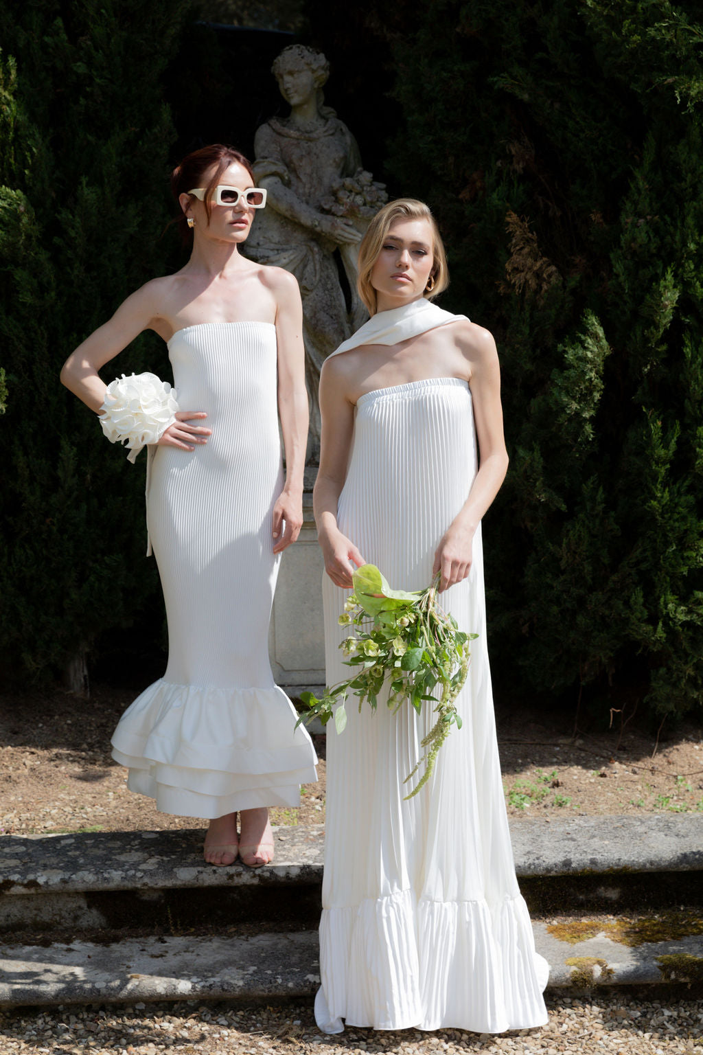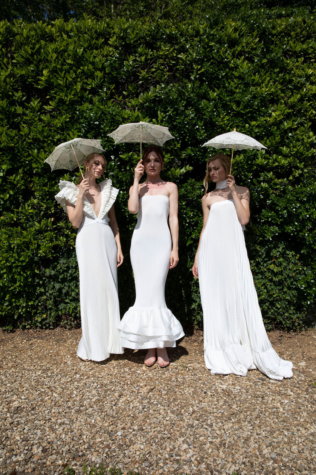 We offer a bespoke bridal service on most of our silhouettes, which can be crafted in numerous tones within an Ivory palette. The garments are executed in our premium high grade polyester, which has a luxuriously weighted hand feel and can be lined or unlined depending on the product.