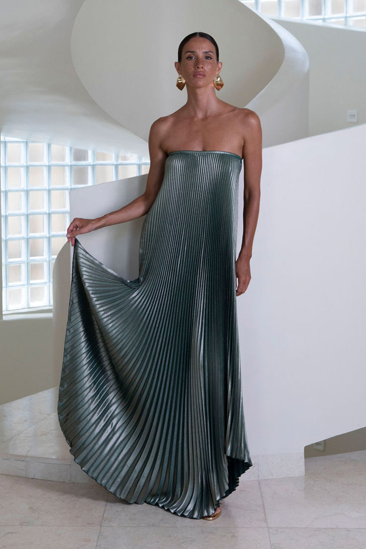 Our shine fabric is a luxurious and unique texture which has been artfully pleated to create a garment that’s special and intricate. All beautiful things take extra care, this material is delicate. Pleats may naturally soften or wrinkle with time, please handle with extra care. Do not leave folded or squashed under other garments. Best stored hanging in your wardrobe where it can shine.