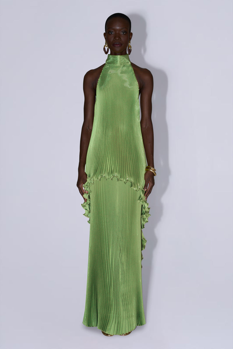 The Gala Skirt epitomises luxury with its exquisite high-shine pleats cascading from the waist to the floor, exuding sheer elegance. Its umbrella pleat design pays homage to the romantic shapes of bygone eras.